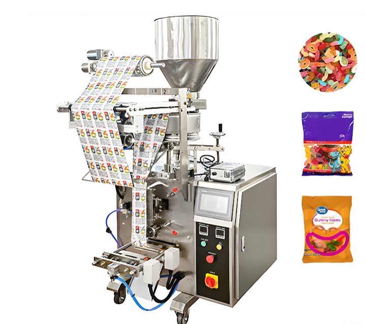 The price of a Fully Automatic Vertical Molding Soft Candy Packaging Machine varies depending on factors such as configuration, level of automation, and speed, typically ranging from $5,000 to $15,000. Commonly used packaging materials include OPP, CPP, PET, and composite films, with the most suitable material selected based on the type of candy. This equipment replaces semi-automatic or manual packaging, improving candy packaging efficiency. The machine can be combined with labeling machines, case packing machines, and other systems to form an assembly line, from packaging film rolls to formed packaging bags and then to the completion of the entire core process of packaging a single product.