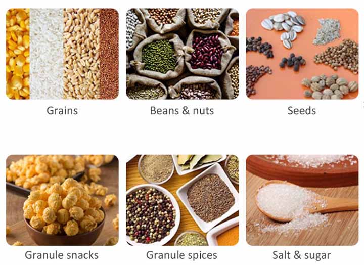 Suitable for materials such as sugar, rice, seeds, or nuts. Often used in conjunction with a multi-head weigher for better weight control. This configuration is common in snack factories and agricultural product packaging.