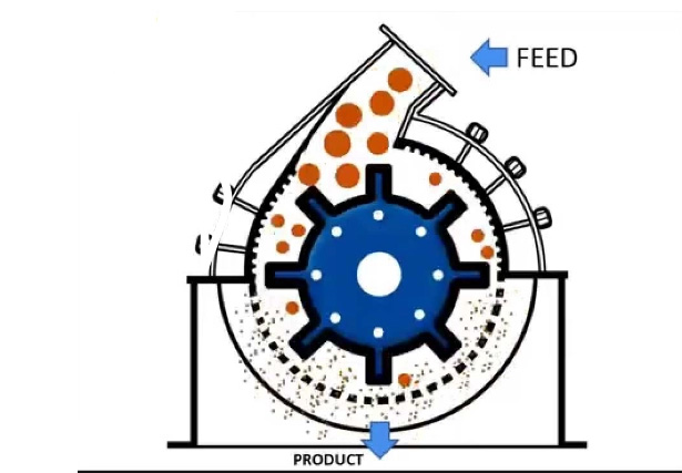 When the Minerals Coarse Crusher is in operation, the minerals enter the casing through the feed inlet and fall onto a high-speed rotating rotor equipped with a row of heavy hammers, reaching speeds of several hundred revolutions per minute. As the rotor rotates, the hammers, carrying inertia, forcefully strike the minerals, breaking large, irregular pieces into smaller ones. The crushed material repeatedly collides inside the casing and is further compressed and ground by the gaps between the hammers and the casing wall. Finally, the material that meets the requirements passes through the screen at the bottom and exits from the discharge outlet. Larger pieces that are not properly crushed remain in the crushing chamber and continue to be impacted until they can pass through the screen holes.
